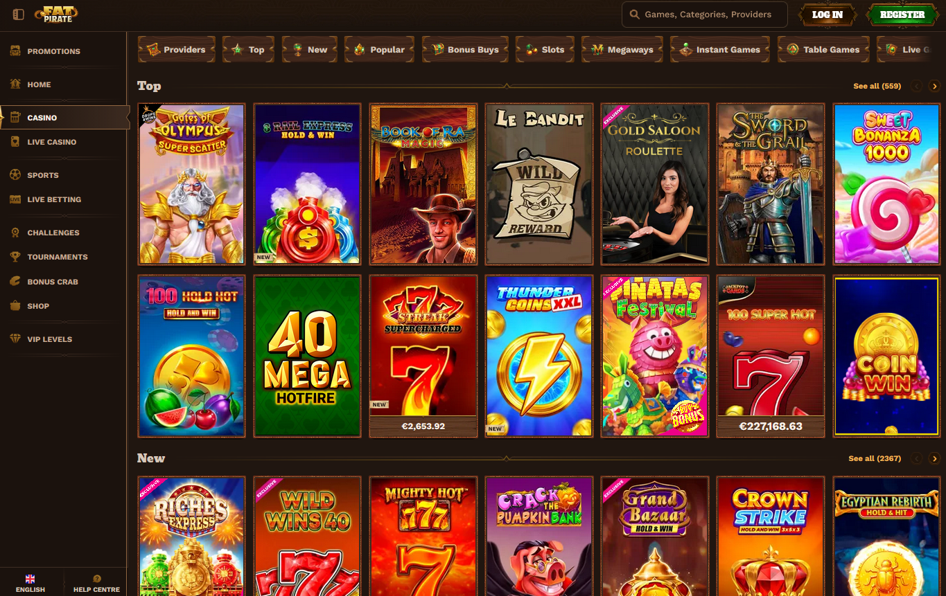 FatPirate娱乐场以其超过5000款游戏的庞大库存和来自Pragmatic Play、Evolution Gaming、Microgaming等顶级提供商的高质量内容,为在线博彩爱好者提供了一个多元化的游戏平台。独特的海盗主题和用户友好的界面增添了娱乐性,而完全优化的移动体验确保玩家可以随时随地享受游戏。